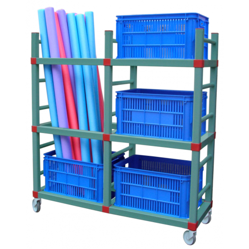 Strong yet lightweight, UV stabilised and assembles in minutes. Chemicals and humidity have no effect on the food grade plastic. Fitted with rubber casters and brakes. Includes 4 x 66 litre removable plastic containers.