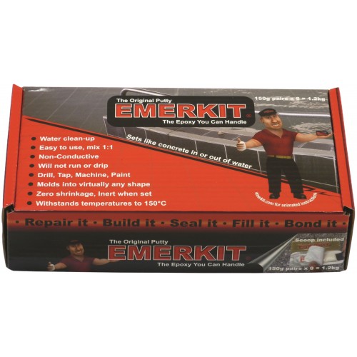 Emerkit is a two part easy to use epoxy that can be moulded in virtually any shape. Use it in or out of the water, sets like concrete. Repair pools without emptying the pool. Emerkit has outst&ing electrical properties making it an excellent product to use for electrical repairs.