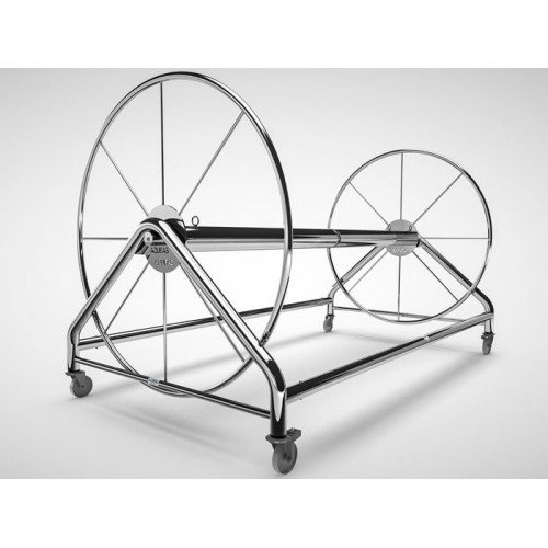 The AQUEAS Storage Reel is made of heavy duty stainless steel. The reel is fitted with an eye for the lane rope to attach, large hand wheels make retrieval of the rope easy to wind on. Four castors are fitted, two with brakes making manoeuvrability by one person easy. The low profile with low centre of gravity give the reel extra stability. The reel is available in four sizes. Holds 100m, 150m, 200m or 250m based on 110mm disc diameter. Supplied flat packed with assembly and care instructions.