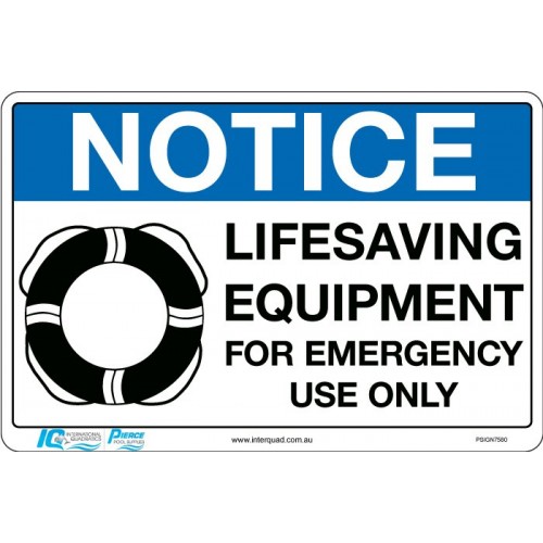 Use to inform that the Lifesaving Equipment is for Emergency Use Only. Polypropylene or Aluminium sign. Size: 450 mm x 300 mm (W x H)