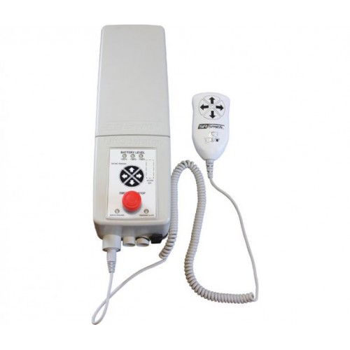 The hand control is completely waterproof, and allows either the user or the attendant to control its operation with ease. The Lift Operator control box and battery are water resistant and should be protected from long exposure to the water. A small, waterproof cover is included with each lift to cover the Lift Operator control box when the system is in use. If the lift is stored for long periods, an optional cover is available for purchase and is recommended to use to protect the system.