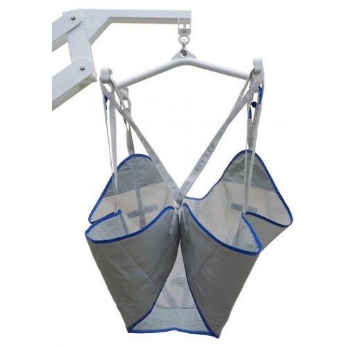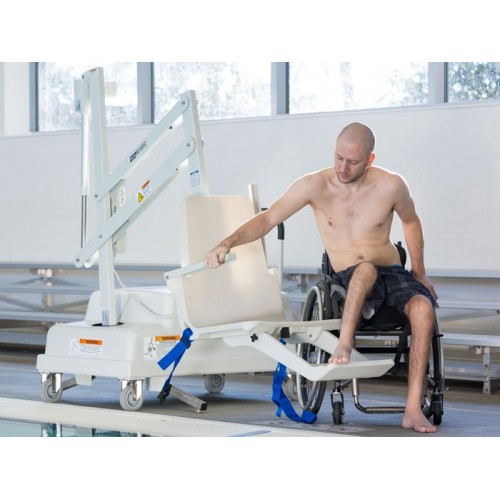 A sling option is also available. The sling can be used instead of the seat by undoing two bolts and removing the arm and seat assembly and replacing it with the Sling Jib. The Sling is then attached to the sling jib. The sling and Jib can be retrofitted to existing Splash, Pal and Pal2 lifts.