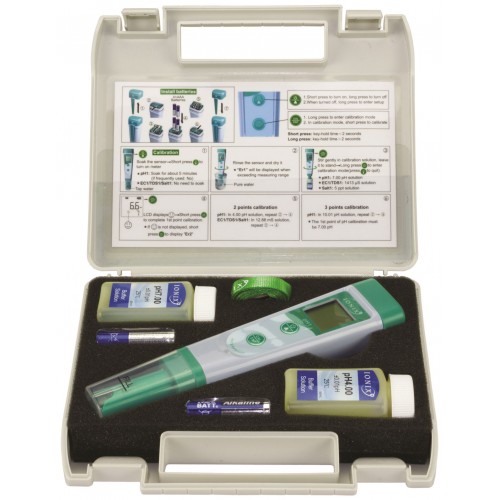 The Ionix pH1 tester is supplied in a premium carry case with lanyard, batteries, calibration standards and instructions.