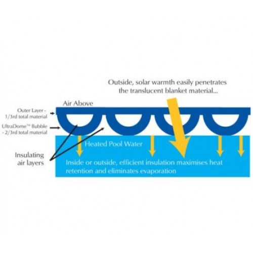 Bubble covers are made from commercial grade 525 micron PE (Ppolyethylene) translucent blue bubble UltraDome™ material, allowing maximum transmission of warming solar radiation into the pool water while also efficiently insulating against heat escaping. In an outdoor pool, it can warm the water by up to 8ºC. It has an R- value (thermal resistance) of 0.067m2/K, thermal conductivity of 0.080 W/mK and a weight of 460g/m2. It comes complete with full edge binding and end reinforcing, cords, flotation rod, multi point attachment and an attached over cover to protect your investment when on the roller. A floating haul cord is supplied to enable ease of operation. If wind is a problem the blankets can be fitted with wind skirts at additional cost.