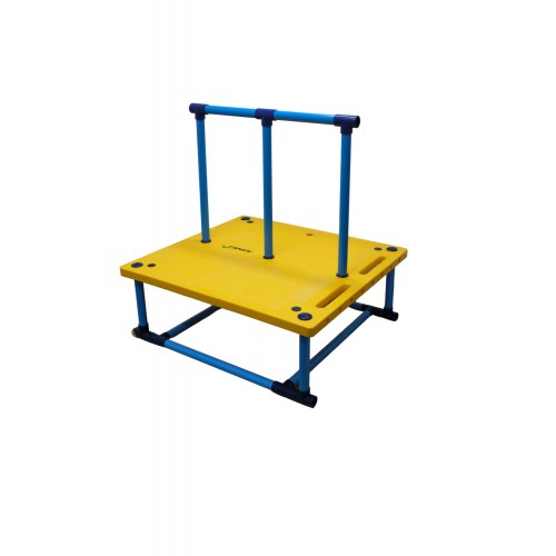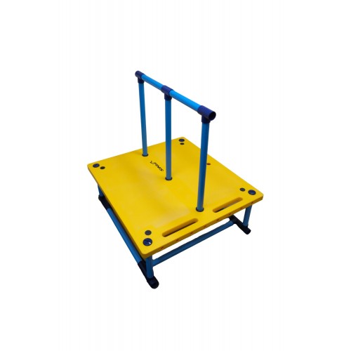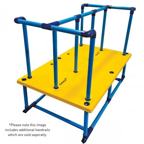 Toddler Island double sided with a yellow fibreglass non-slip finish for safety and visibility. It has a PVC centre rail giving distinction between teaching areas that can be removed for stacking making storage easy. The swim island has two wheels making it very manoeuvrable and easy to get in and out of the water. Two islands can interlock to form one long platform.