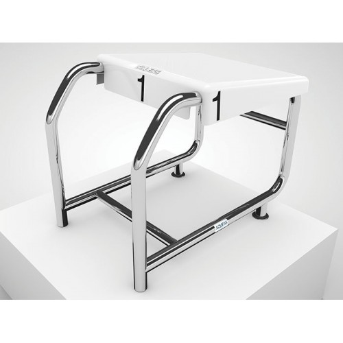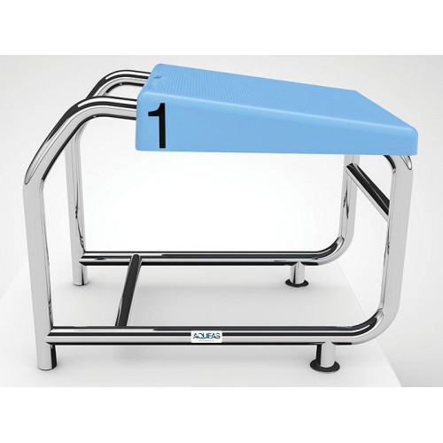 The AQUEAS AQ-SP01 Starting Platform is designed for a wide coping (end wall) where the coping is between water level but no higher than 250 mm above water level.