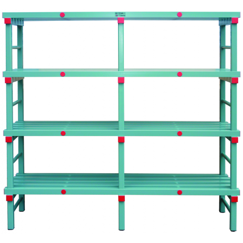 The REA system is strong, easy to clean, lightweight, stable, UV stabilised and assembles in minutes without the need for tools. Chemicals and humidity has no effect on the food grade plastic.