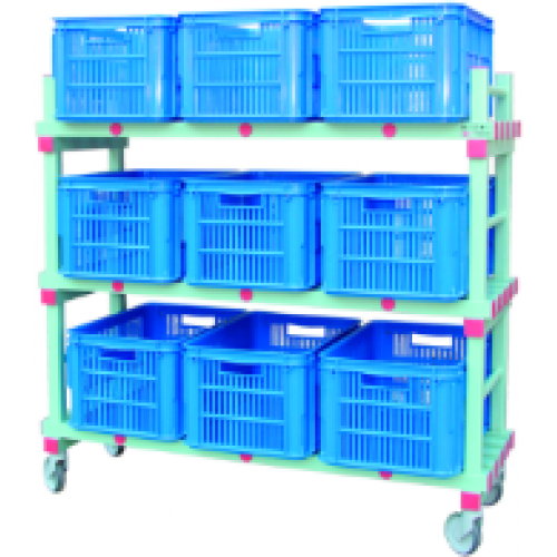 Strong yet lightweight, UV stabilised and assembles in minutes. Chemicals and humidity has no effect on the food grade plastic. Fitted with rubber castors and brakes.